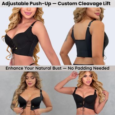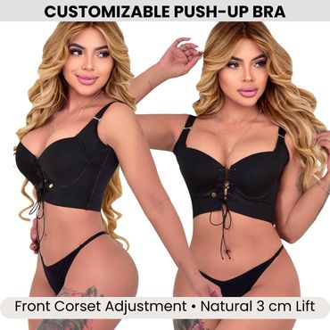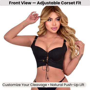 Engineered for retailers seeking a premium bra with natural lift, wide back support, and an adjustable front-corset system that adapts to multiple cup sizes.